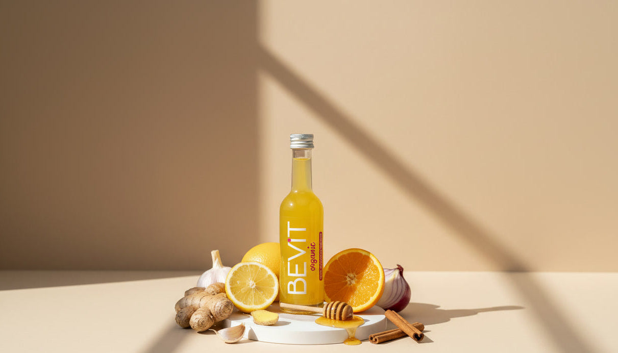 Un shot diseñado para integrarse fácilmente en tu rutina. BEVIT reinterpreta una fórmula tradicional en un formato moderno, pensado para acompañarte cada día de forma práctica y consciente.