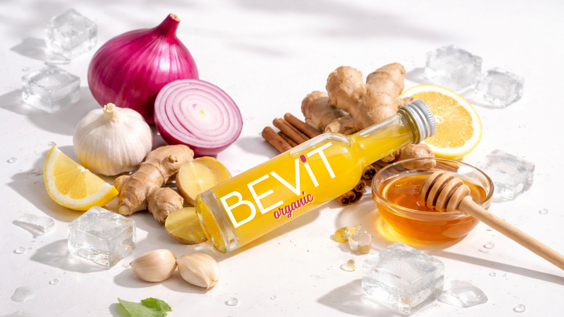 BeVit Organic combina ingredientes naturales utilizados tradicionalmente para aliviar la tos y fortalecer defensas, creando un shot potente y 100% natural.